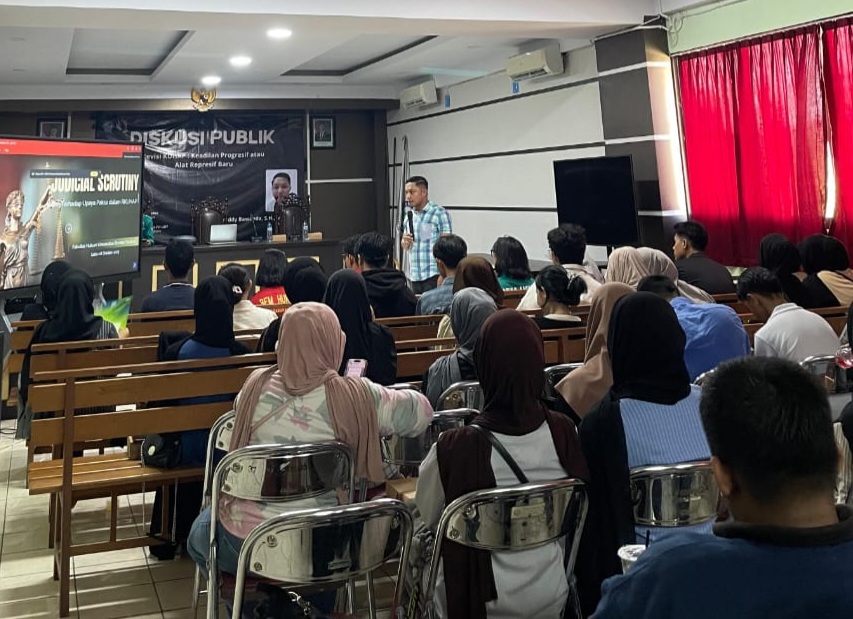 Diskusi berlangsung interaktif dengan berbagai pandangan kritis mahasiswa terkait isu kriminalisasi warga, perlindungan kebebasan berpendapat, hingga penerapan nilai-nilai keadilan dalam KUHP baru.