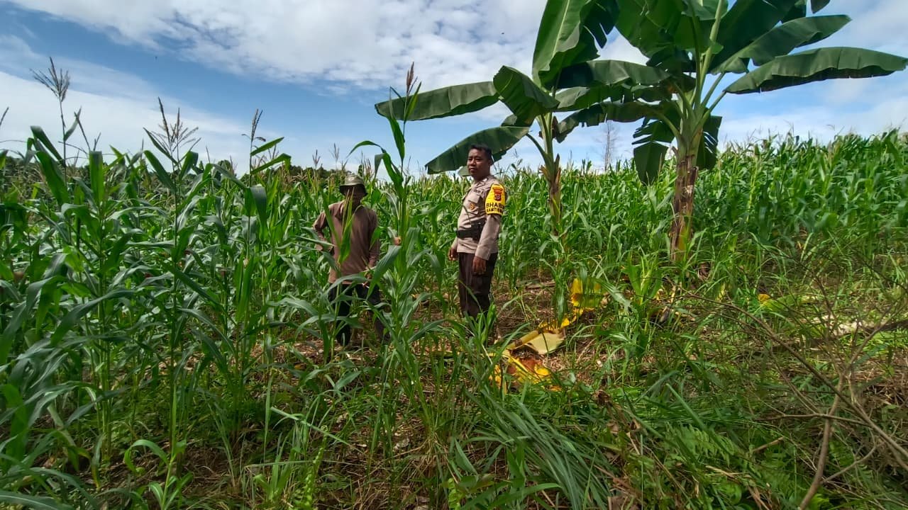 Bhabinkamtibmas turun langsung ke lapangan untuk memantau kondisi tanaman jagung, memastikan pertumbuhan tanaman berjalan dengan baik, serta memberikan pendampingan kepada petani dalam mengelola lahan pertanian.