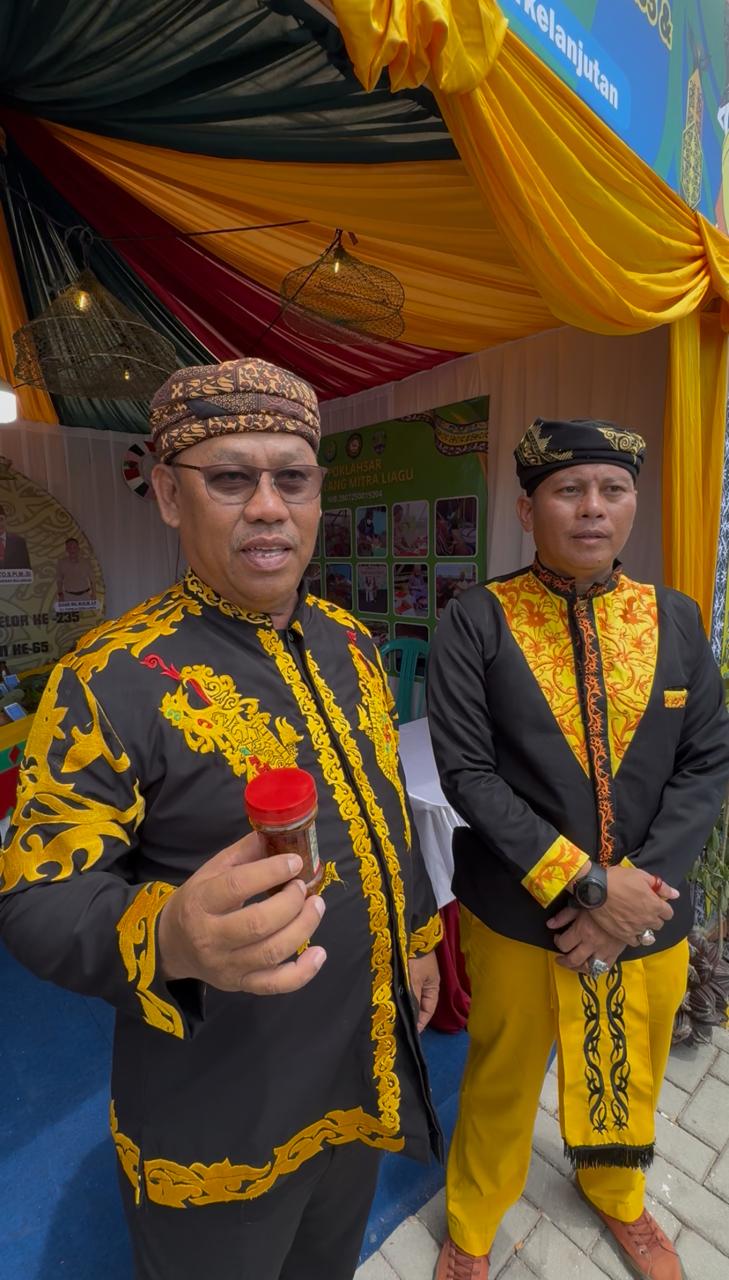 “Sekarang saya berada di salah satu stan desa, yaitu Desa Liagu. Desa ini saya tahu persis karena berada di sekitar pesisir wilayah Bulungan. Ini sebuah desa kecil dan merupakan pemekaran dari Desa Sekatak Buji dan berada di pesisir yang punya potensi cukup besar ekosistem kelautannya,” ujar Wabup Malinau di Stan Desa Liagu.