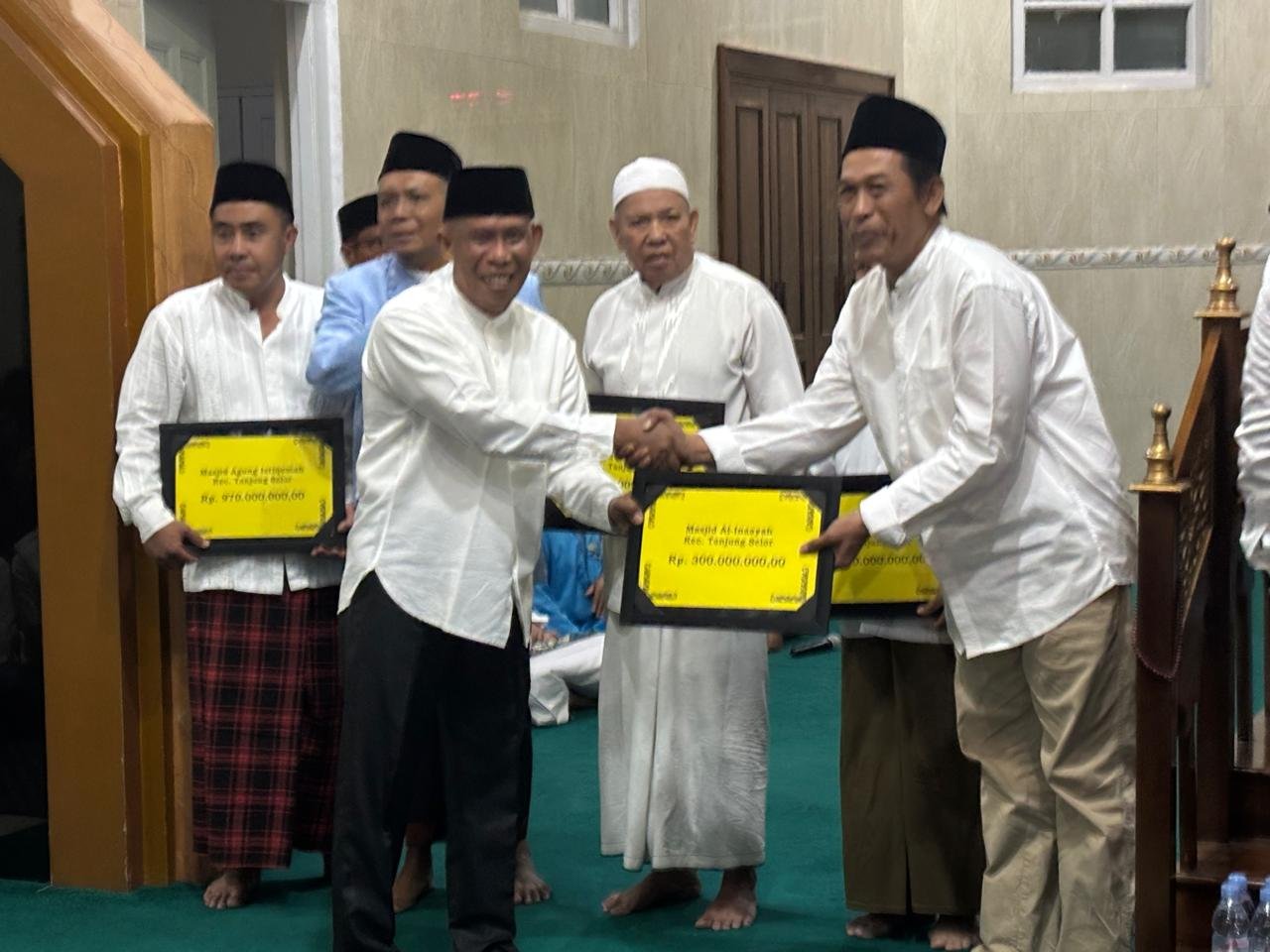 Masjid Agung Istiqomah: Rp 970.000.000, DPD BKPRMI Kabupaten Bulungan: Rp 700.000.000, Baznas Kabupaten Bulungan: Rp 500.000.000, MUI Kabupaten Bulungan: Rp 350.000.000, Masjid Al-Inaayah Tanjung Selor: Rp 300.000.000,Masjid Nurul Jannah Sabanar Lama: Rp 100.000.000.