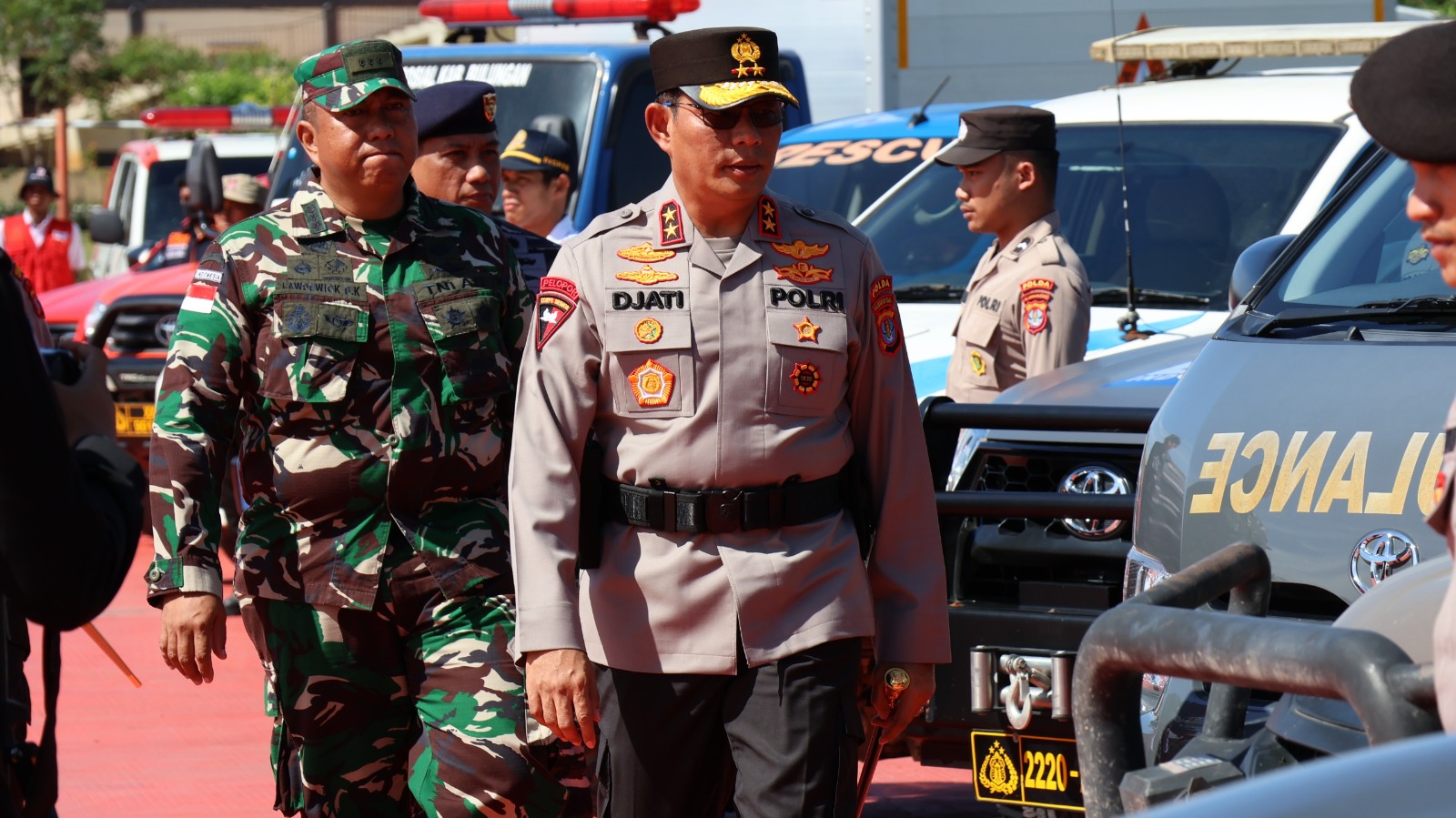 Dalam kesempatan tersebut, Kapolda bersama Wakapolda Kaltara, Karoops, Ka BPBD Provinsi, Ka Basarnas Provinsi, Wakil Bupati Bulungan dan Kapolresta Bulungan melakukan pengecekan pasukan dan sarana prasarana (sarpras) pendukung, termasuk kendaraan dan alat tanggap darurat yang disiapkan untuk menghadapi bencana.