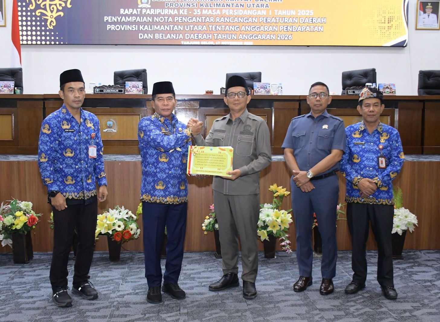 IKaeN.id, TANJUNG SELOR – Gubernur Kalimantan Utara (Kaltara), Dr. H. Zainal A. Paliwang, S.H., M.Hum., menghadiri Rapat Paripurna ke-35 Dewan Perwakilan Rakyat Daerah (DPRD) Provinsi Kaltara, dengan agenda Pengantar Nota Keuangan Rancangan Peraturan Daerah (Ranperda) Provinsi Kaltara Tentang Anggaran Pendapatan dan Belanja Daerah (APBD) Tahun Anggaran (TA) 2026.
