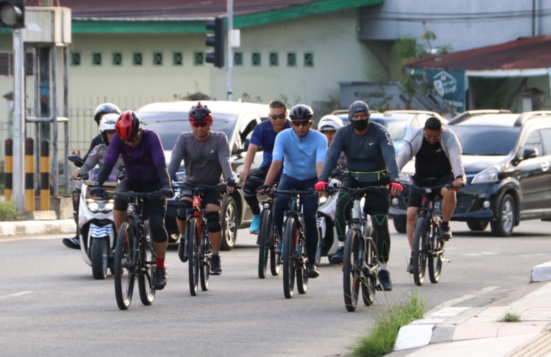 BEROLAHRAGA: Kapolda Kaltara, Irjen Pol. Djati Wiyoto Abadhy gowes bareng PJU Polda Kaltara menyusuri Kota Tanjung Selor, Jumat (10/10/2025). Foto: Bidhumas Polda Kaltara