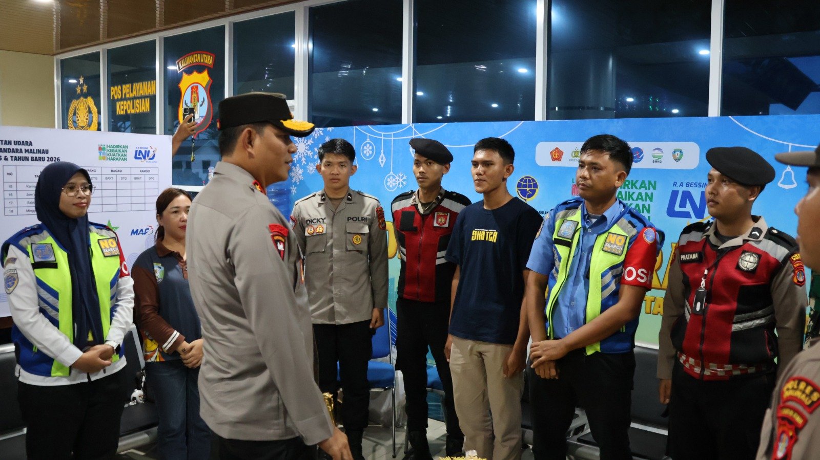 MELAYANI: Kapolda Kaltara, Irjen Pol. Djati Wiyoto Abadhy meninjau Posyan Operasi Lilin Kayan 2025 di Bandara Robert Atty Bessing Malinau, Selasa (23/12/2025). Foto: Bidhumas Polda Kaltara